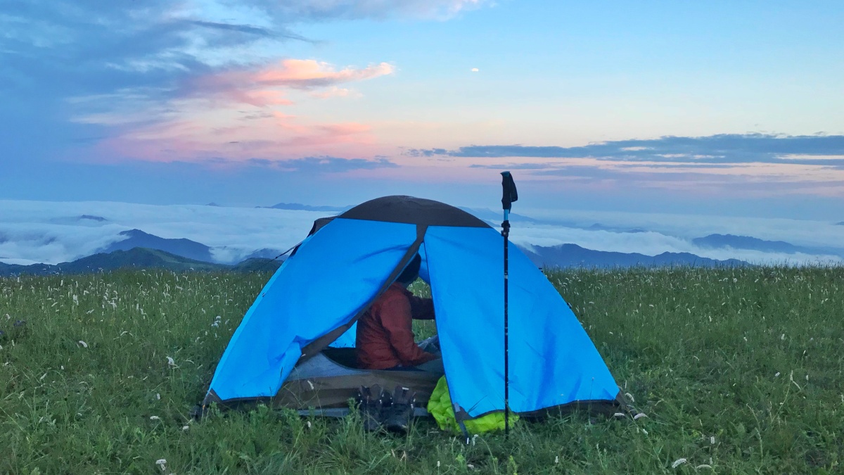 海坨山,冒着大雨登顶,扎营。落日云海日出,都见到了,圆满。